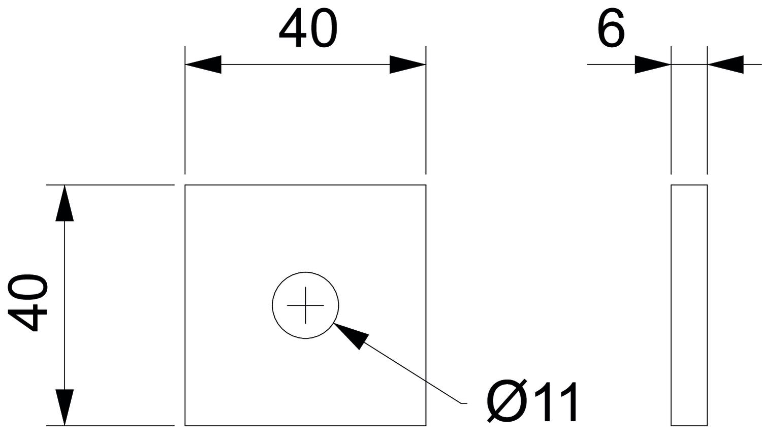 Dimension 40x40x6 Height 6 mm Length 40 mm Material Steel Surface Hot-dip galvanised Width 40 mm - All types