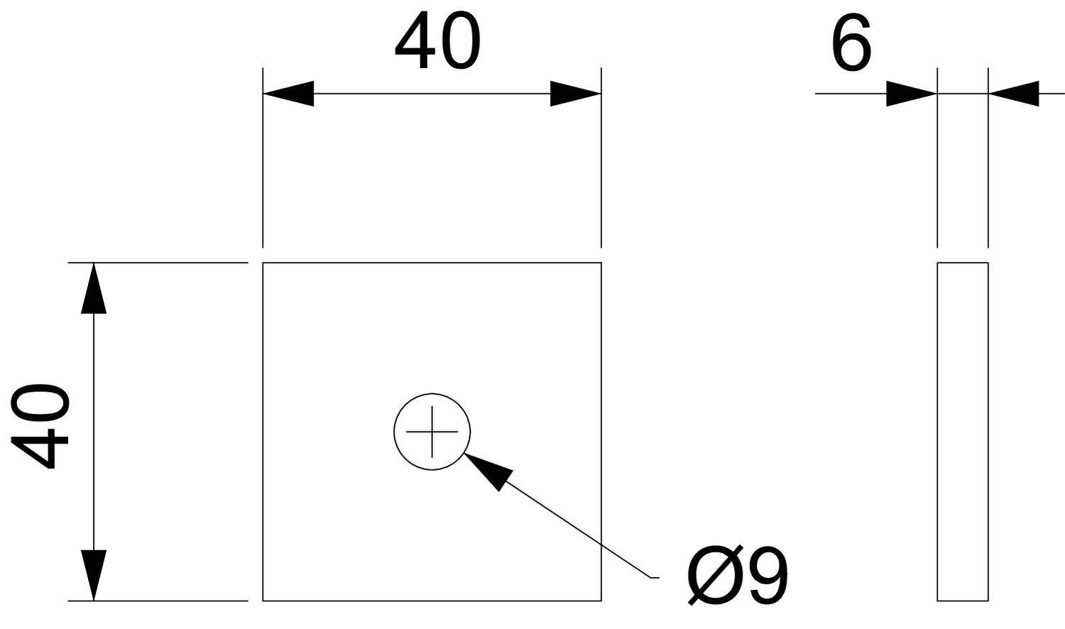Dimension 40x40x6 Height 6 mm Length 40 mm Material Steel Surface Hot-dip galvanised Width 40 mm - All types