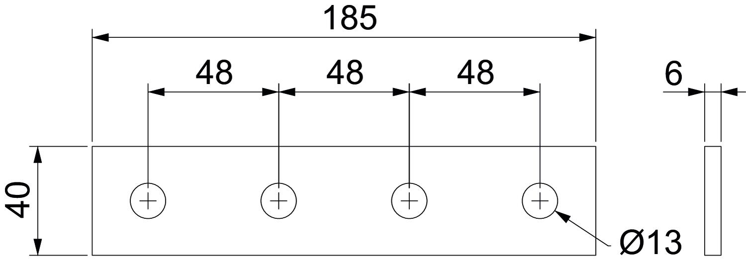 Dimension 190x40x6 Height 6 mm Length 190 mm Material Steel Surface Hot-dip galvanised Width 40 mm - All types