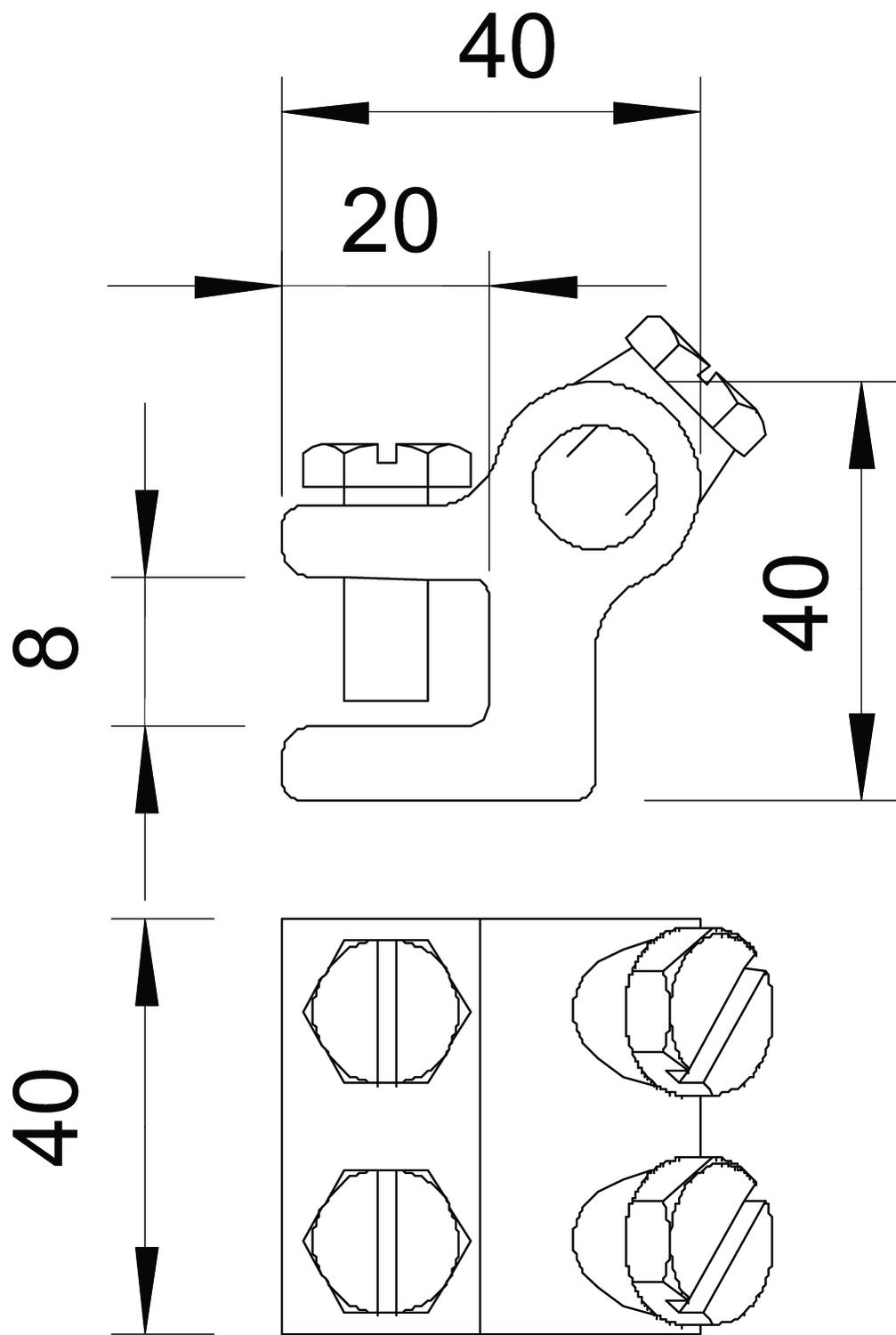 Clamping range, max. 8 mm CO2 Footprint (GWP) Cradle-to-Gate 0,4703 kg CO2e / 1 Piece Dimension 8mm Fit Rd 8-10 mm Intermediate plate no Lightning current carrying capacity N/50 kA Material cast steel Suitable for connection Round conductor Rd 8–10 / Rd 8–10 Surface Hot-dip galvanised Type of connector Connection terminal Type of fastening screw Hexagonal bolt - All types