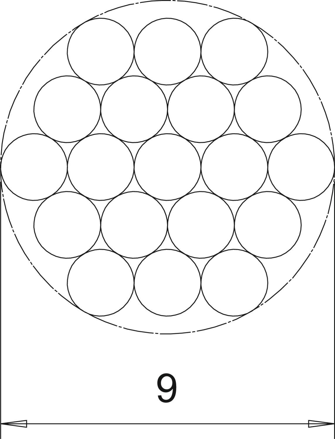 Colour Copper Cross-section 50 mm² Diameter 9 mm Diameter of the individual wires 1,8 mm Dimension 19x1,8mm Dimension D 9 mm Length 100000 mm Material Copper Material jacket Without Nomal ring (approx. m) 100 Normal ring (ca. kg) 45 Number of individual wires 19 - All types