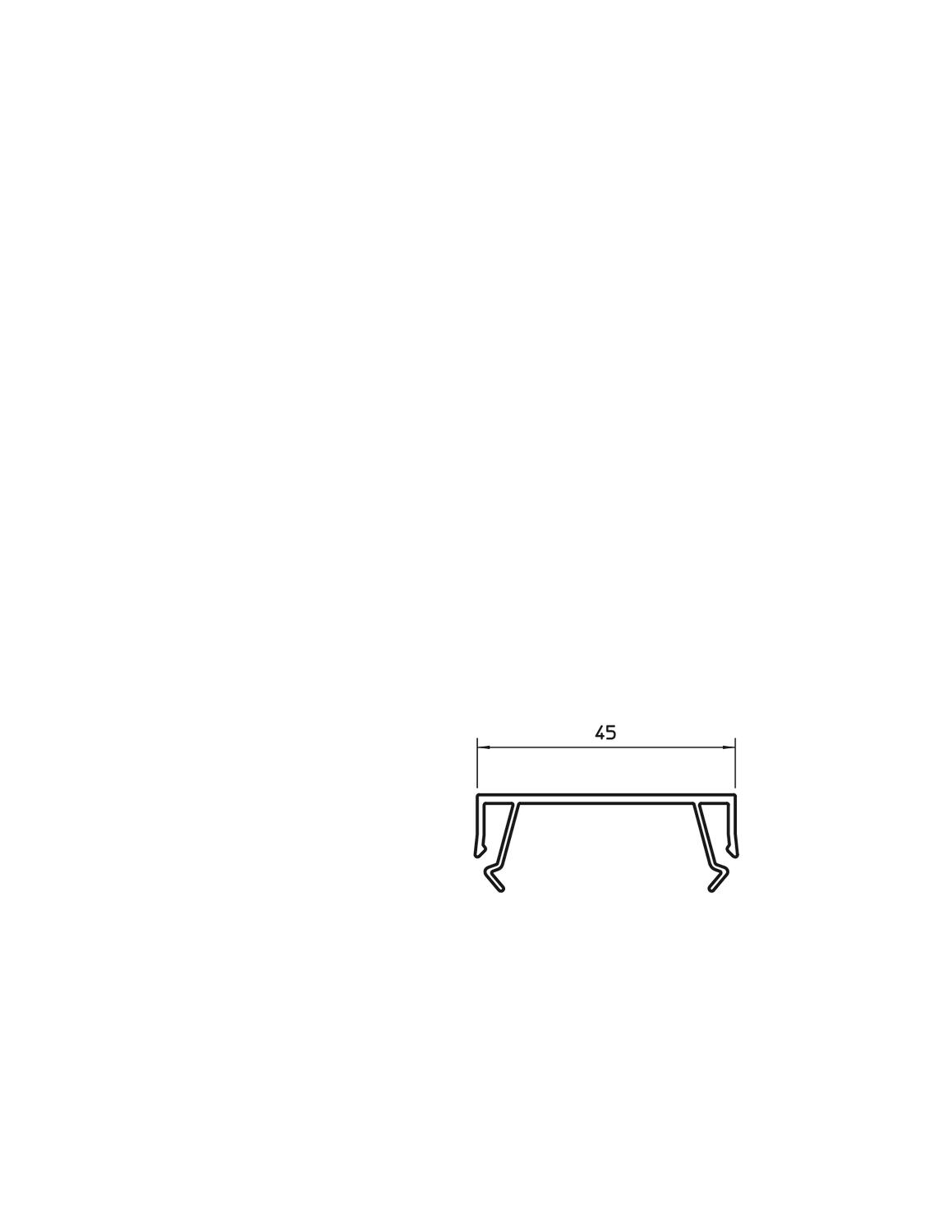 Antibacterial treatment no CO2 Footprint (GWP) Cradle-to-Gate 0,4061 kg CO2e / 1 Meter Colour Pure white; RAL 9010 Cover mounting type Internal Dimension 45x2000mm Halogen-free no Length 2000 mm Material Polyvinylchloride Permitted temperature range, max. 60 °C Permitted temperature range, min. -15 °C Protection rating IP30 Protection rating IK code IK08 Protective film yes Version for Smooth Width 45 mm - All types