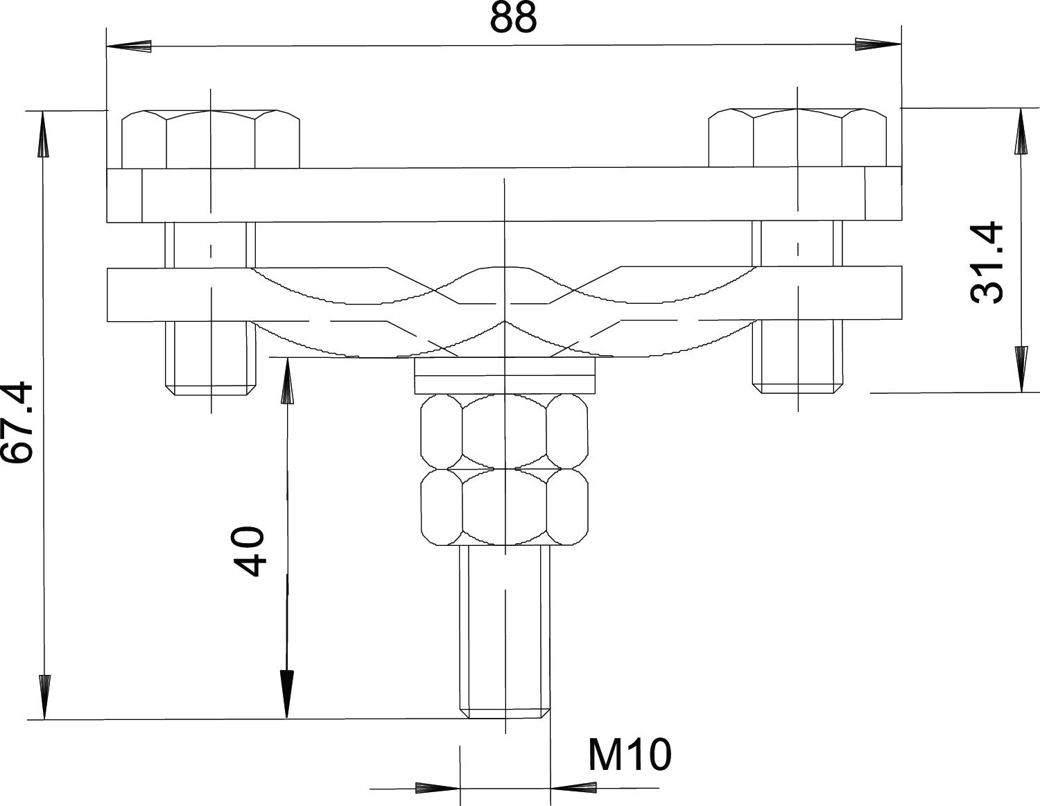 • With flange-welded bolts M10 x 40, inc. 2 washers and 2 nuts