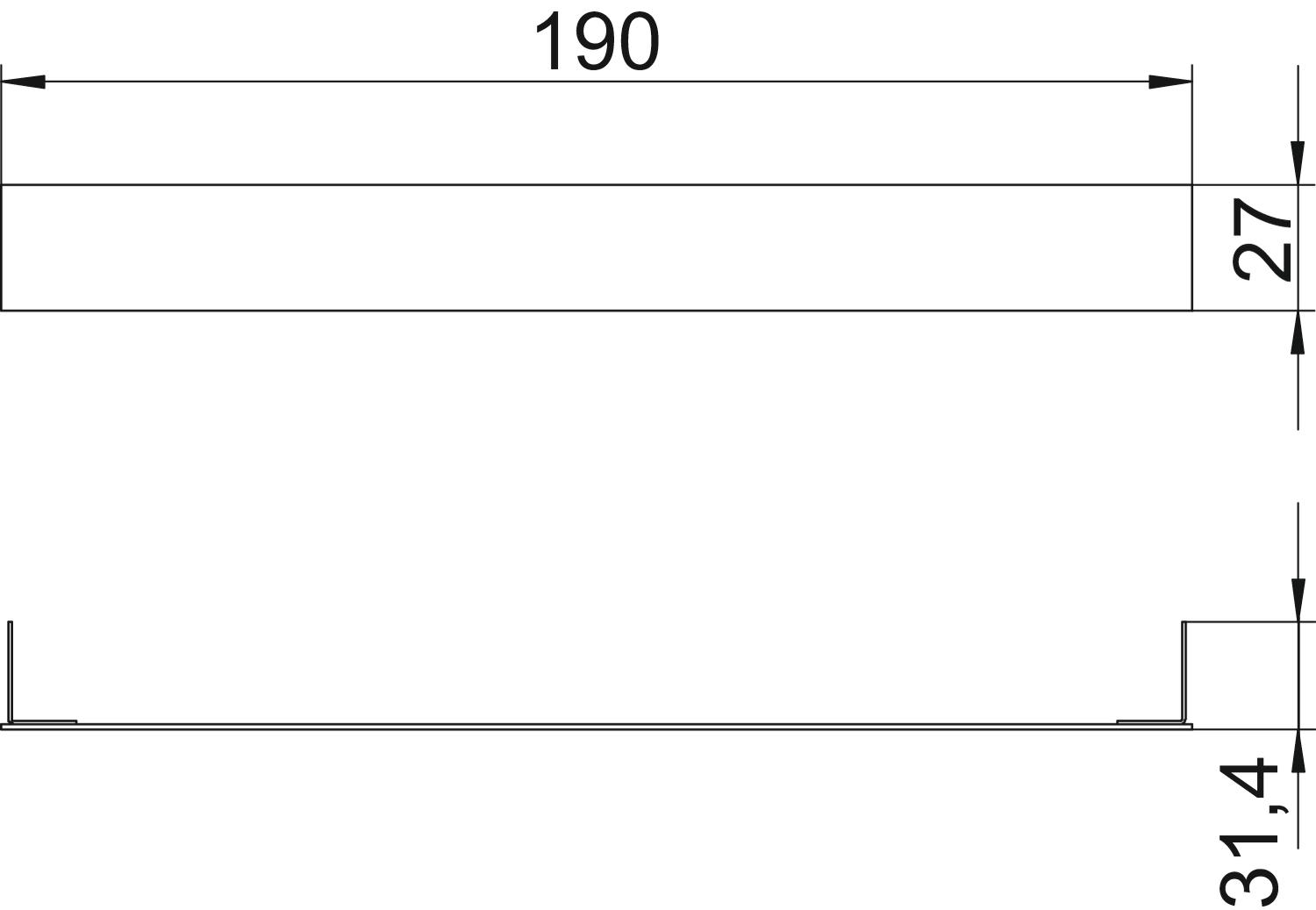Application area Screed-covered Dimension 190x27mm Dimension a 190 mm Dimension h 27 mm Duct height, min. 28 mm Height 28 mm Material Steel Suitable for flushfloor, open underfloor trunking no Suitable for screed-covered underfloor ducts yes Suitable for screed-flush closed underfloor ducts no Surface Strip galvanized Trunking width, min. 190 mm Width 190 mm - All types