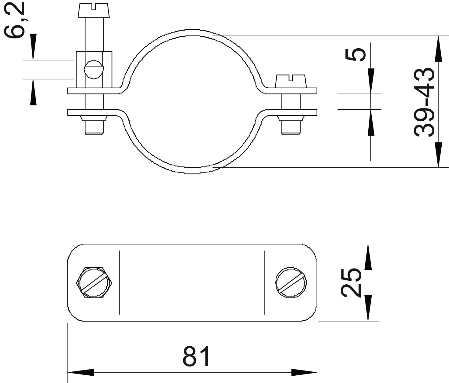 Clamping range D 1 1/4 Clamping range D, max. 43 mm Clamping range D, min. 39 mm CO2 Footprint (GWP) Cradle-to-Gate 0,3163 kg CO2e / 1 Piece Cross-section of cable to be connected, max. 25 mm² Dimension 39-43mm Dimension A 81 mm Dimension b 25 mm Dimension X 5 mm Material Copper Number of conductors 1 Surface Nickel-plated - All types