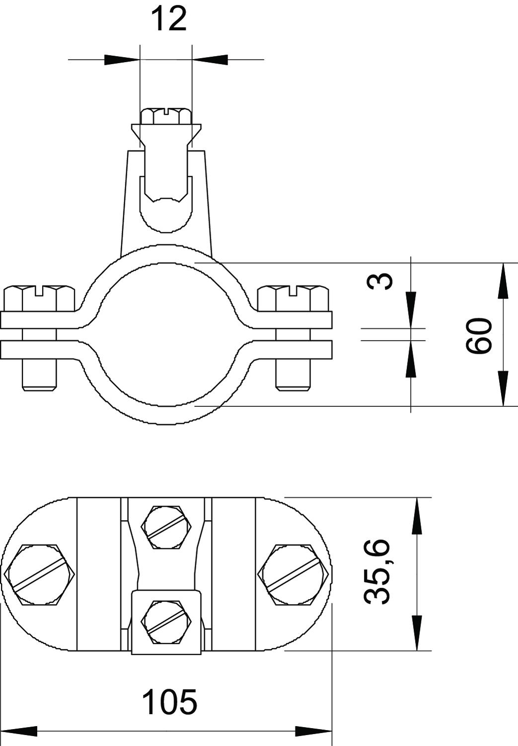 Clamping range D 2 Clamping range D, max. 60 mm Clamping range D, min. 57 mm CO2 Footprint (GWP) Cradle-to-Gate 1,0852 kg CO2e / 1 Piece Cross-section of cable to be connected, max. 70 mm² Cross-section of cable to be connected, min. 16 mm² Dimension 2" Dimension A 105 mm Dimension D 60 mm Dimension X 3 mm Material Steel Number of conductors 1 Surface Hot-dip galvanised - All types