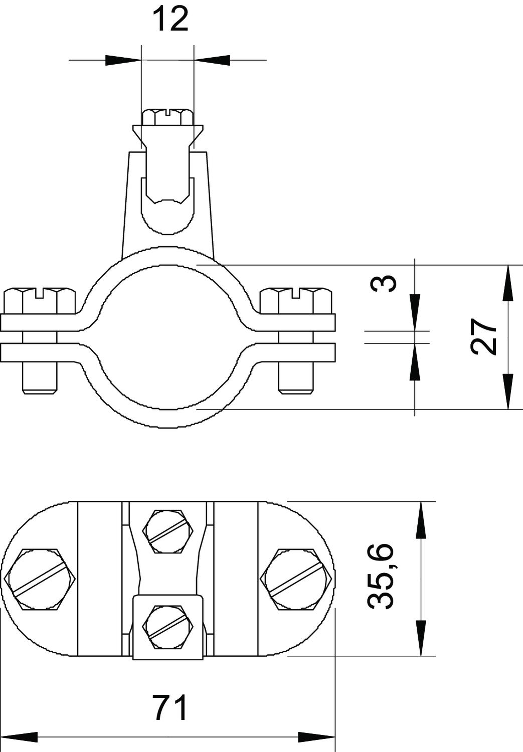 Clamping range D 3/4 Clamping range D, max. 27 mm Clamping range D, min. 24 mm CO2 Footprint (GWP) Cradle-to-Gate 0,8424 kg CO2e / 1 Piece Cross-section of cable to be connected, max. 70 mm² Cross-section of cable to be connected, min. 16 mm² Dimension 3/4" Dimension A 71 mm Dimension D 27 mm Dimension X 3 mm Material Steel Number of conductors 1 Surface Hot-dip galvanised - All types