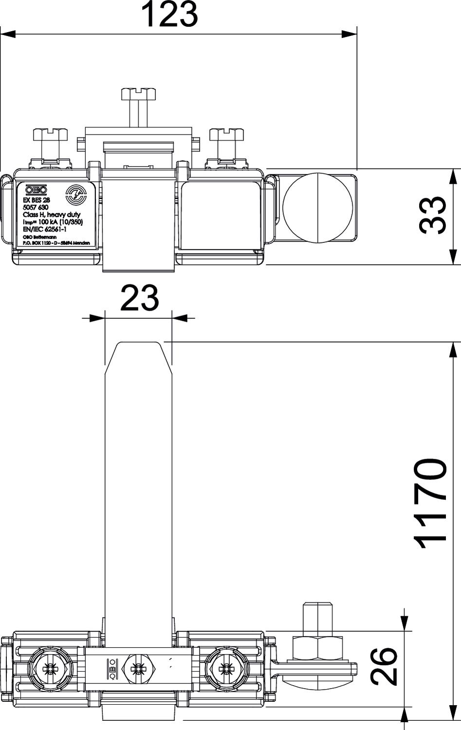 • Lightning current carrying capacity class H (100 kA) to VDE 0185-561-1 (IEC/EN 62561-1)