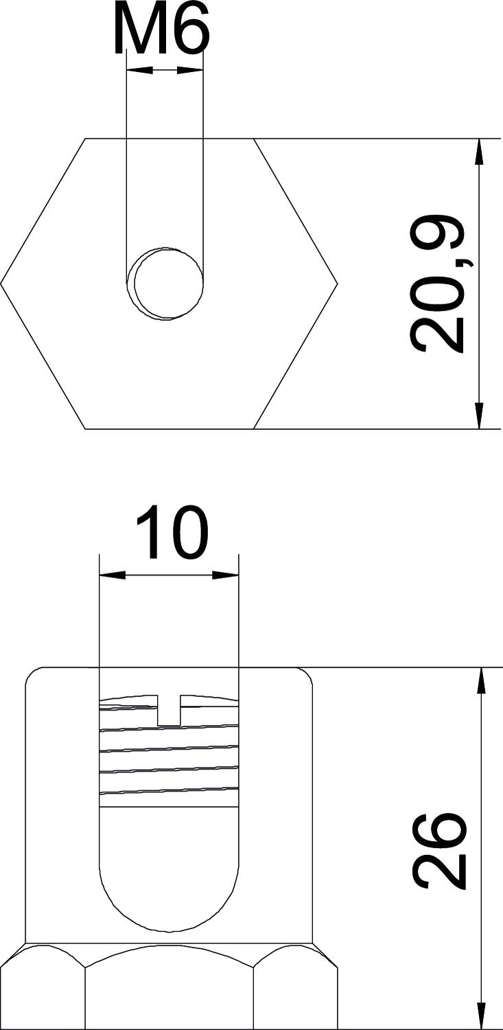 CO2 Footprint (GWP) Cradle-to-Gate 0,1191 kg CO2e / 1 Piece Colour Brass Cross-section 75 mm² Dimension 25-75mm² Dimension L 26 mm Dimension l 10 mm Maintain electrical functions no Material Brass Rustproof steel, pickled no Suitable for cable ladder yes Suitable for cable tray yes Suitable for mesh cable tray no Thread M6 WAF 21 With screw accessories no - All types