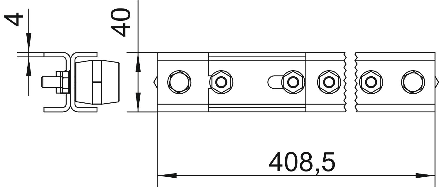 CO2 Footprint (GWP) Cradle-to-Gate 6,0023 kg CO2e / 1 Piece Dimension 10xM10 Height 5 mm Insulator yes Length 408,5 mm Lightning current carrying capacity H/100 kA Material Stainless steel 1.4301 Material of the contact rail Rustproof steel (V2A) Material of the terminal Rustproof steel (V2A) Number of connections 10 Quantity of round conductor connections, total 10 Type Modular structure Version for Only terminal Width 40 mm - All types