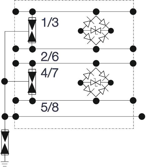 Arrestor monitoring no Capacity (wire-earth) <10 pF Capacity (wire-wire) <50 pF Channel performance Ansi/EA CAT 5e Channel performance ISO/IEC Class D CO2 Footprint (GWP) Cradle-to-Gate 1,5752 kg CO2e / 1 Piece Cut-off frequency 155 MHz Dimension 6.2V Earthing via: Connection cable Impulse durability wire-earth C2: 3 kV / 1,5 kA (8/20µs) Impulse durability wire-wire C2: 3 kV / 1,5 kA (8/20µs) Insertion loss <3 @ 150 MHz dB Insulation resistance >1 GΩ Kategorie Type 2+3 / C2+C1 Lightning protection zone LPZ 1→3 Maximum continuous voltage AC 4,2 V Maximum continuous voltage DC 6 V Number of poles 8 Permitted temperature range, max. 80 °C Permitted temperature range, min. -40 °C Plug-in system RJ45 8(8) Protection level wire-earth <900 V Protection level wire-wire <40 V Protection rating IP40 Screening Direct Shielding connection available yes SPD to IEC 61643-21 Class II+III / C2+C1 Testing standard IEC 61643-21 Total discharge current (8/20) 7,5 kA Version for Fine protection, 8 wires + shield - All types