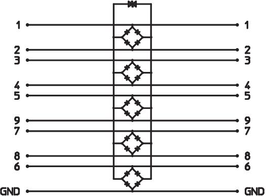 Arrestor monitoring no CO2 Footprint (GWP) Cradle-to-Gate 0,0926 kg CO2e / 1 Piece Dimension 6V Explosion-tested version no Height 34 mm Impulse durability wire-earth 0,75 kA (8/20µs) Impulse durability wire-wire 0,75 kA (8/20µs) Kategorie Type 3 / C1 Length 60 mm Lightning protection zone LPZ 2→3 Maximum continuous voltage AC 5,2 V Maximum continuous voltage DC 8 V Nominal voltage 6 V Number of poles 9 Permitted temperature range, max. 80 °C Permitted temperature range, min. -40 °C Plug-in system D-Sub 9-pin Protection level wire-earth <100 V Protection level wire-wire <100 V Protection level, wire-earth at 1 kV/µs (C3) <10 Protection level, wire-wire at 1 kV/µs (C3) <10 V Protection rating IP40 Response time <10 ns Screening Direct Shielding connection available yes SPD to IEC 61643-21 Class III / C1 Telecommunications contact no Testing standard IEC 61643-21 Version for SUB-D-9; V11 RS485 Width 16 mm - All types