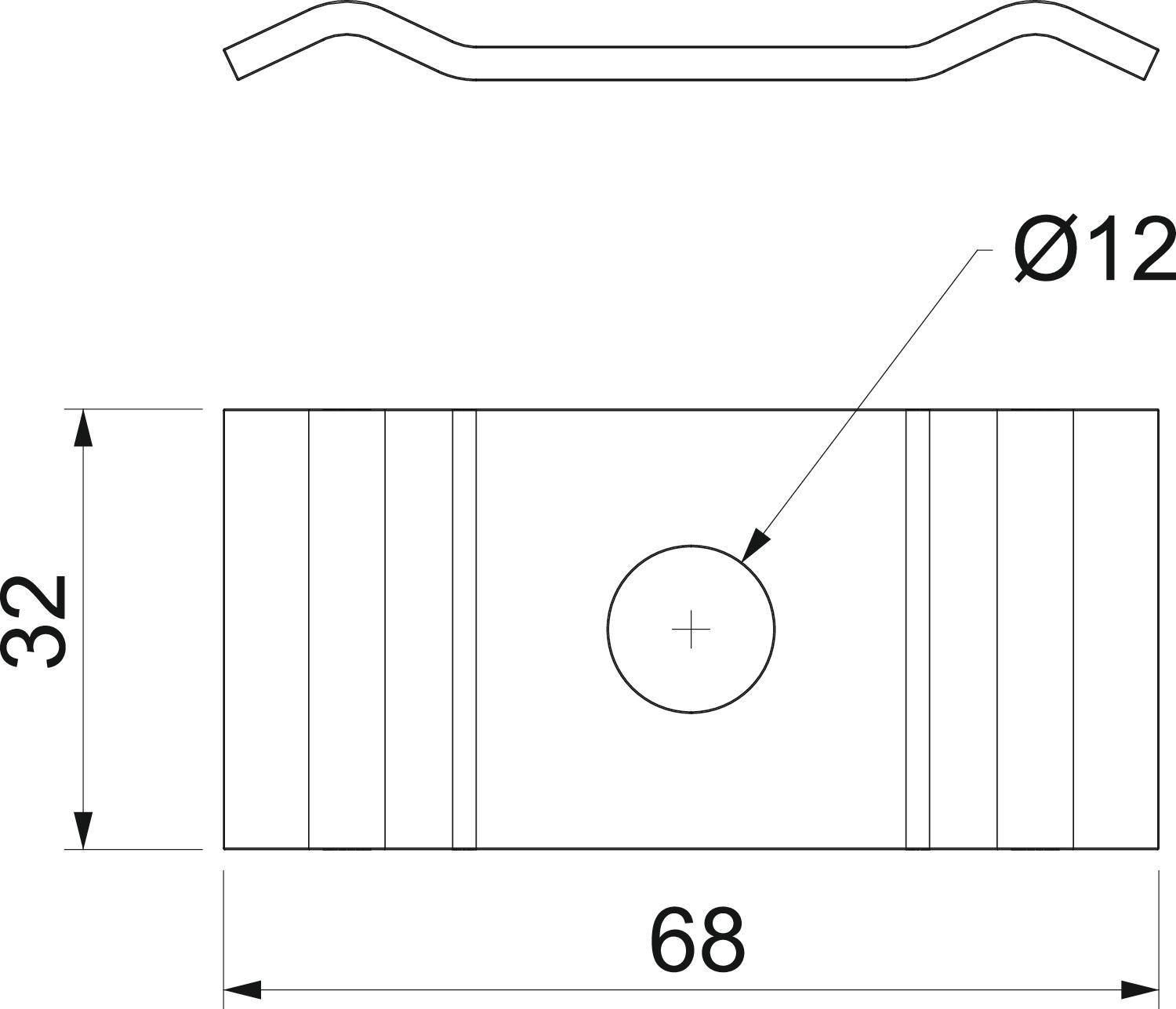 Dimension 68x32x7 Hole diameter 12 mm Maintain electrical functions no Material Steel Rustproof steel, pickled no Suitable for cable ladder no Suitable for cable tray no Suitable for mesh cable tray yes Surface Hot-dip galvanised With screw accessories yes - All types