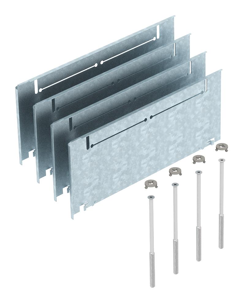 Product descriptionHeight compensation set for underfloor boxes UZD250-3 and UGD250-3 with a construction height of 70 to 125 mm for construction stacking of the UZD/UGD to a height of 115-170 mm, consisting of four fall plates, four height adjustment screws and four rotary locks.