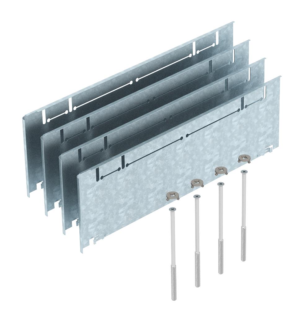 Product descriptionHeight compensation set for underfloor boxes UZD350-3 with a construction height of 70 to 125 mm, consisting of four fall plates, four height adjustment screws and four rotary locks.
