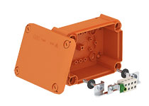 Junction boxes which simply offer you more safety in cases of fire – no problem with the FireBox. Together with the supplied bolt ties, the high temperature-resistant ceramic connection unit within the FireBox forms a fire protection-tested system, approved for mounting on concrete, masonry, calcareous limestone and brick.