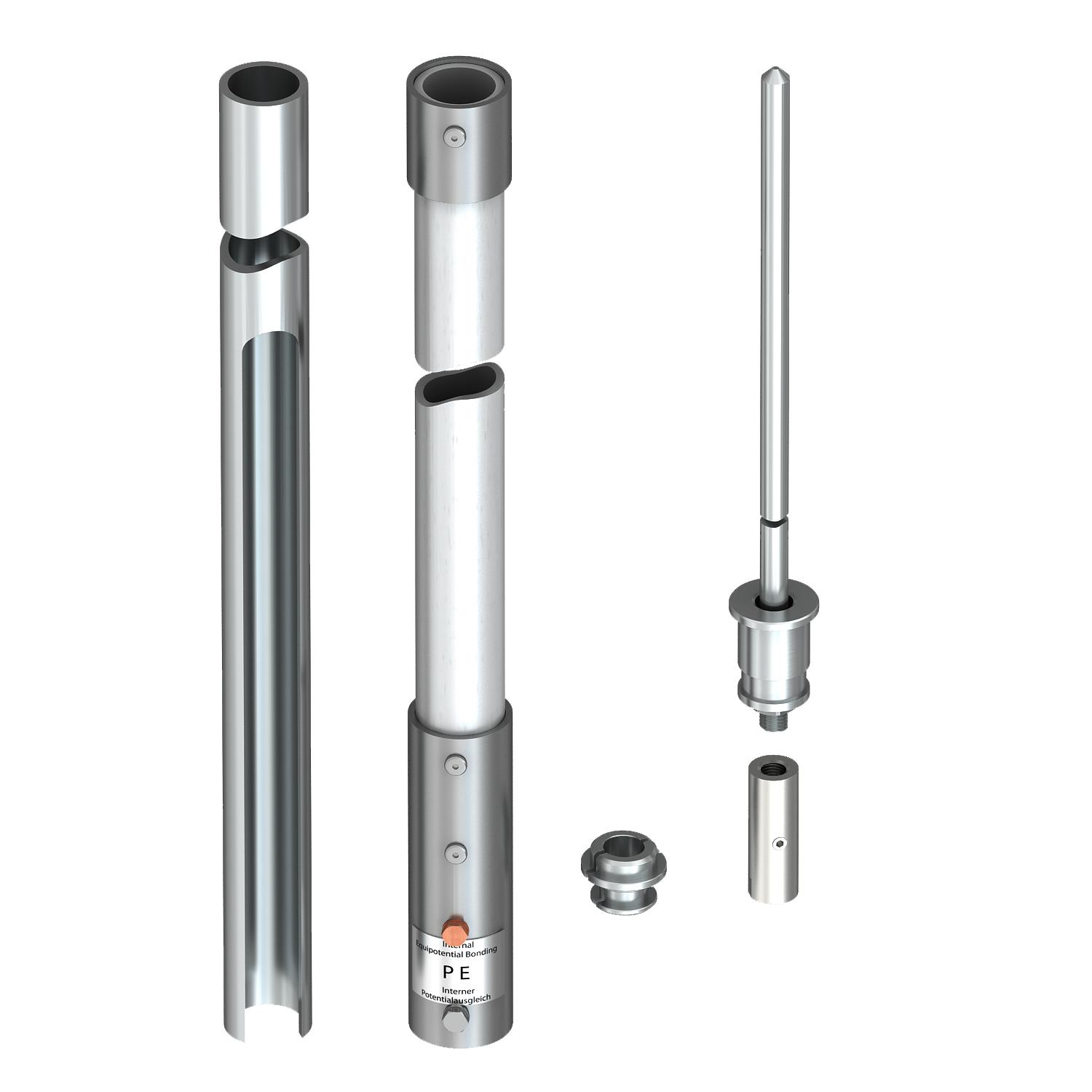 • With side conductor outlet matching isFang air-termination rod stand with side outlet, type isFang 3B-A