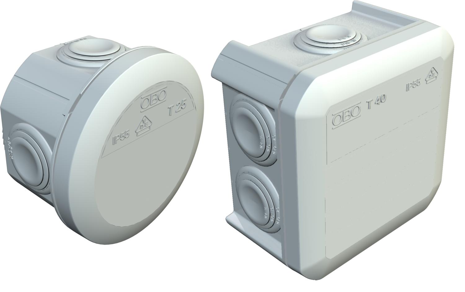 Junction box according to DIN EN 60670. Flame-resistant to DIN EN 60695/2/11, test temperature 650 °C. Impact resistance IK07 according to DIN EN 50102.