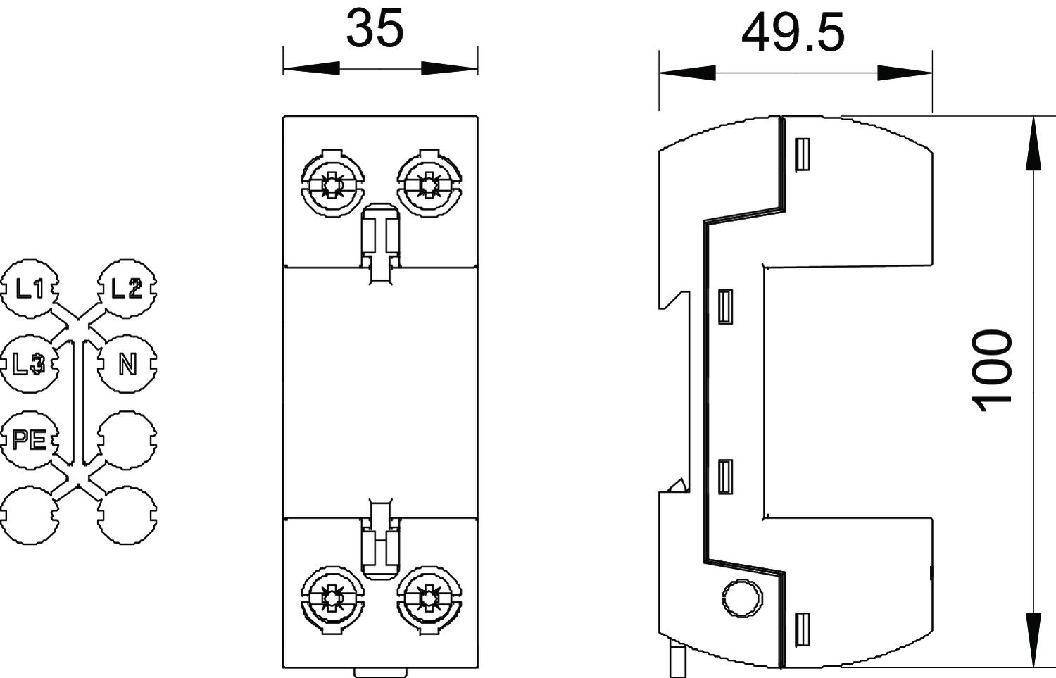 Arrester surge current (8/20 µs) [total] 125 kA Blow-out no CO2 Footprint (GWP) Cradle-to-Gate 0,9532 kg CO2e / 1 Piece Conductor cross-section, rigid (single-wire/multiwire), max. 50 mm² Conductor cross-section, rigid (single-wire/multiwire), min. 10 mm² Dimension 1-pole Explosion-tested version no Height 49,5 mm Installation type DIN rail 35 mm Length 100 mm Lightning protection zone LPZ 0→1 Lightning surge current (10/350) 125 kA Network form All Nominal discharge current (8/20 µs) 50 kA Operating temperature, max. 85 °C Operating temperature, min. -40 °C Permitted temperature range, max. 85 °C Permitted temperature range, min. -40 °C Pole version 1 Protection rating IP20 Remote signalling no Signalling on device None Test class, type 1 yes Version for 1-pole base Width 35 mm - All types