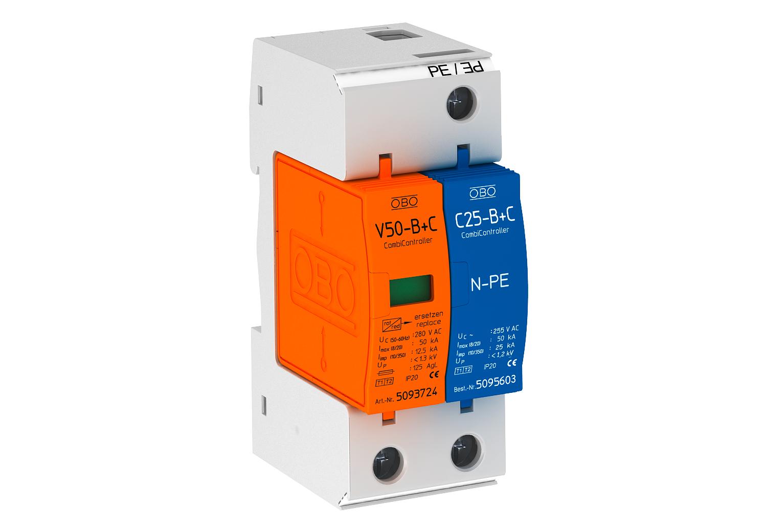 • Lightning current arresting capacity 12.5 kA (10/350) per pole and 50 kA (10/350) in total