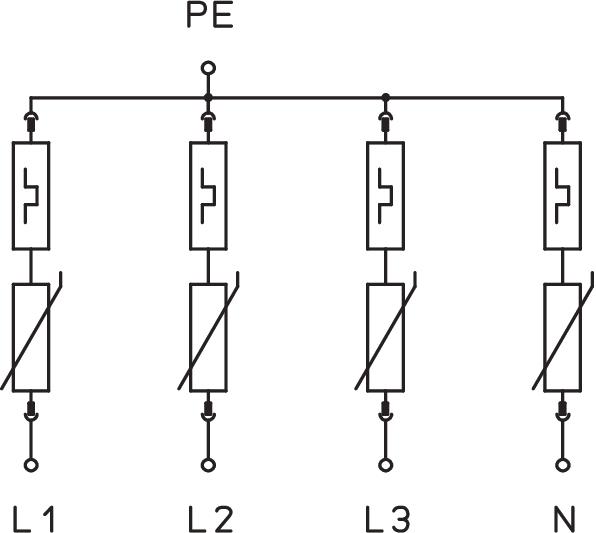 Arrester surge current (8/20 µs) [total] 120 kA Blow-out no CO2 Footprint (GWP) Cradle-to-Gate 1,6472 kg CO2e / 1 Piece Conductor cross-section, rigid (single-wire/multiwire), max. 35 mm² Conductor cross-section, rigid (single-wire/multiwire), min. 2,5 mm² DC network form no Dimension 280V Installation type DIN rail 35 mm Integrated back-up fuse no IT network form no Lightning protection zone LPZ 0→2 Lightning surge current (10/350 μs) 12,5 kA Lightning surge current (10/350) 50 kA Max. mains-side overcurrent protection 125 Maximum back-up fuse 125 A Maximum continuous voltage AC 280 V Maximum discharge current (8/20 μs) 50 kA Network form Other Nominal discharge current (8/20 µs) 30 kA Nominal discharge current (8/20 µs) [L-N] 30 kA Nominal voltage AC (50/60 Hz) 230 V Operating temperature, max. 80 °C Operating temperature, min. -40 °C Other network form no Permitted temperature range, max. 80 °C Permitted temperature range, min. -40 °C Pole number 4 Pole version 4 Protection level [L-N] ≤1,3 Protection rating IP20 Remote signalling no Response time <25 ns Signalling on device Visual SPD to EN 61643-11 Type 1+2 SPD to IEC 61643-1 Class I+II TN network form yes TN-C network form no TN-C-S network form yes TN-S network form yes TT network form no Version for 4-pole - All types