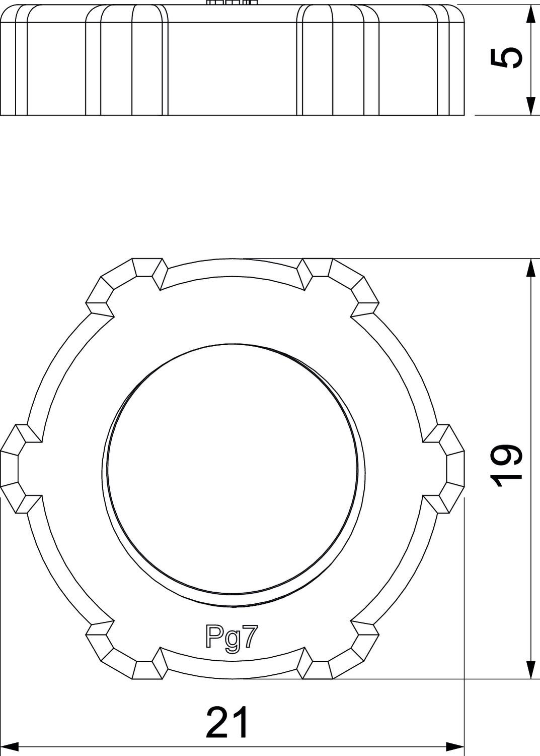 CO2 Footprint (GWP) Cradle-to-Gate 0,008 kg CO2e / 1 Piece Colour Light grey; RAL 7035 Dimension PG7 Dimension E 21 mm Dimension L 5 mm Fibre-glass reinforced no Halogen-free yes Impact-resistant no Material Polyamide Nominal thread size metric/PG 7 Thread Pg 7 Thread type PG WAF 19 - All types