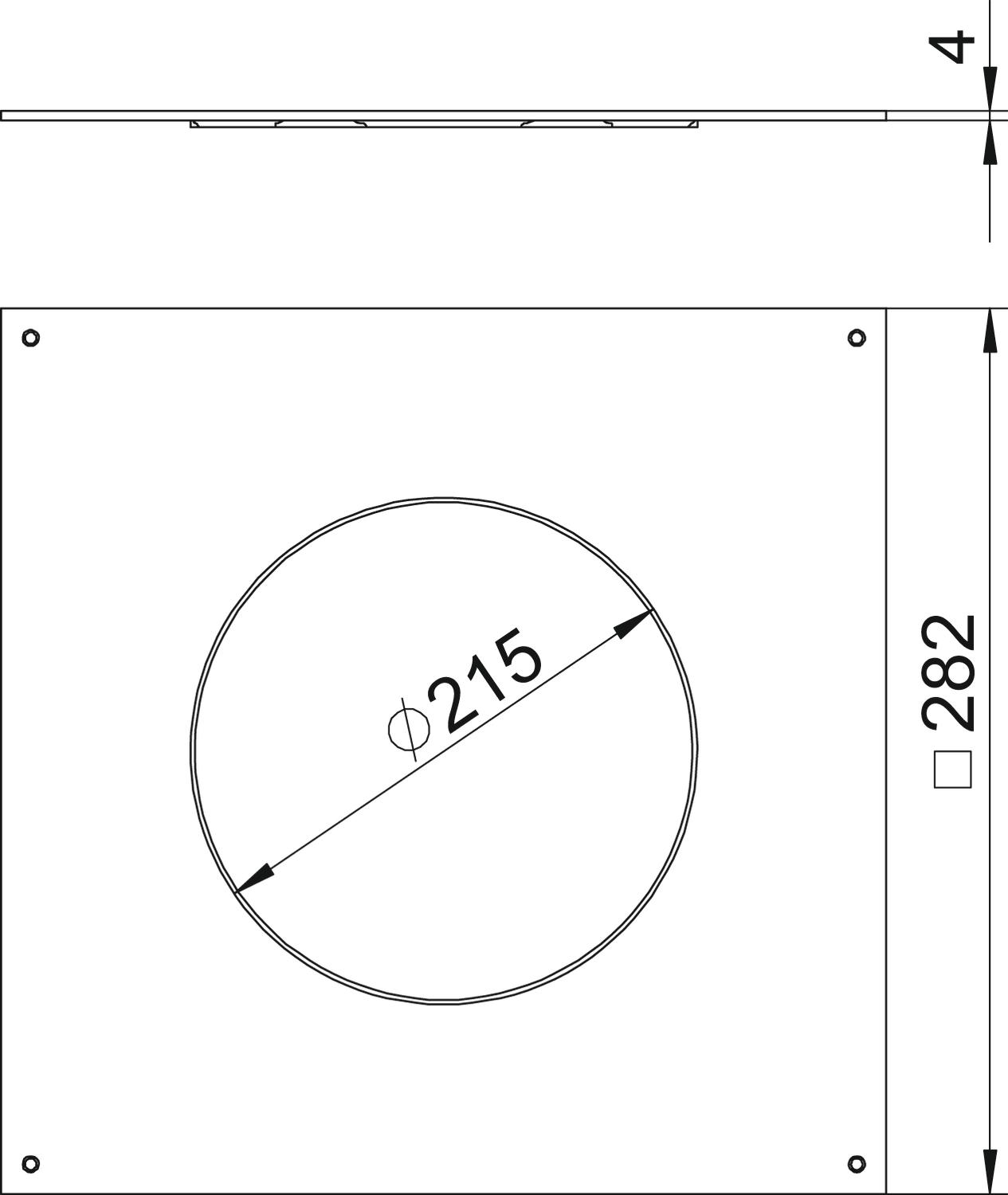 CO2 Footprint (GWP) Cradle-to-Gate 5,6111 kg CO2e / 1 Piece Dimension 282x282x4 Dimension A 282 mm Dimension d Ø 215 mm Floor care Dry Heavy-duty version no Installation opening for on-floor tank no Length 282 mm Material Steel Material thickness 4 mm Mounting opening Round Mounting opening cover yes Nominal size 250 mm Nominal size for device installation units R4 Seal installation option no Suitable for screed-covered underfloor ducts yes Suitable for screed-flush closed underfloor ducts no Surface Strip galvanized Trunking width, max. 250 mm Trunking width, min. 190 mm Width 282 mm - All types