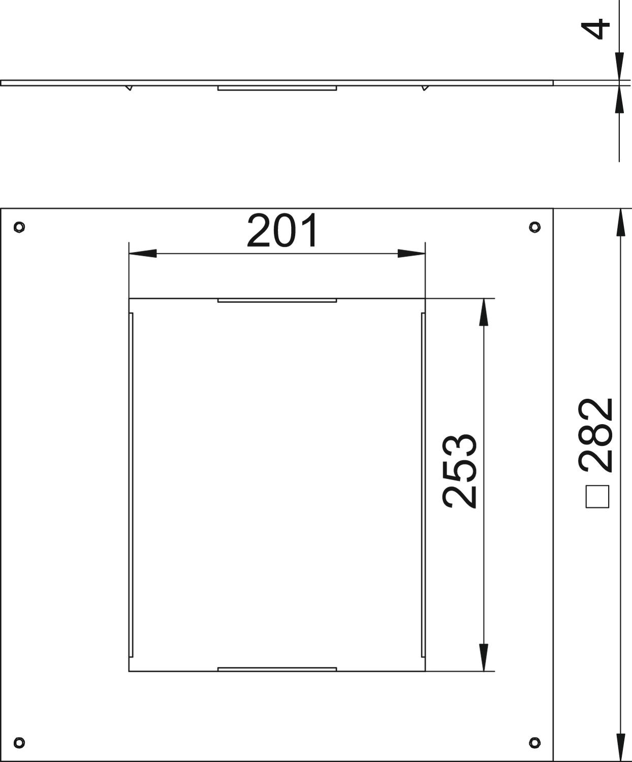 CO2 Footprint (GWP) Cradle-to-Gate 5,6146 kg CO2e / 1 Piece Dimension 282x282x4 Dimension A 282 mm Dimension a 201 mm Dimension b 253 mm Floor care Dry Heavy-duty version no Installation opening for on-floor tank no Length 282 mm Material Steel Material thickness 4 mm Mounting opening Rectangular Mounting opening cover no Nominal size 250 mm Nominal size for device installation units 6 Seal installation option no Suitable for screed-covered underfloor ducts yes Suitable for screed-flush closed underfloor ducts no Surface Strip galvanized Trunking width, max. 250 mm Trunking width, min. 190 mm Width 282 mm - All types