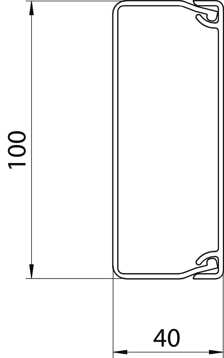 Antibacterial treatment no Cable retaining clip yes Colour Pure white; RAL 9010 Dimension 40x100x3000 Duct connector no Fastening type Base perforation Halogen-free no Length 3000 mm Material Polyvinylchloride Number of insertable partitions 1 Protective film no Version, cable trunking cover Loose - All types