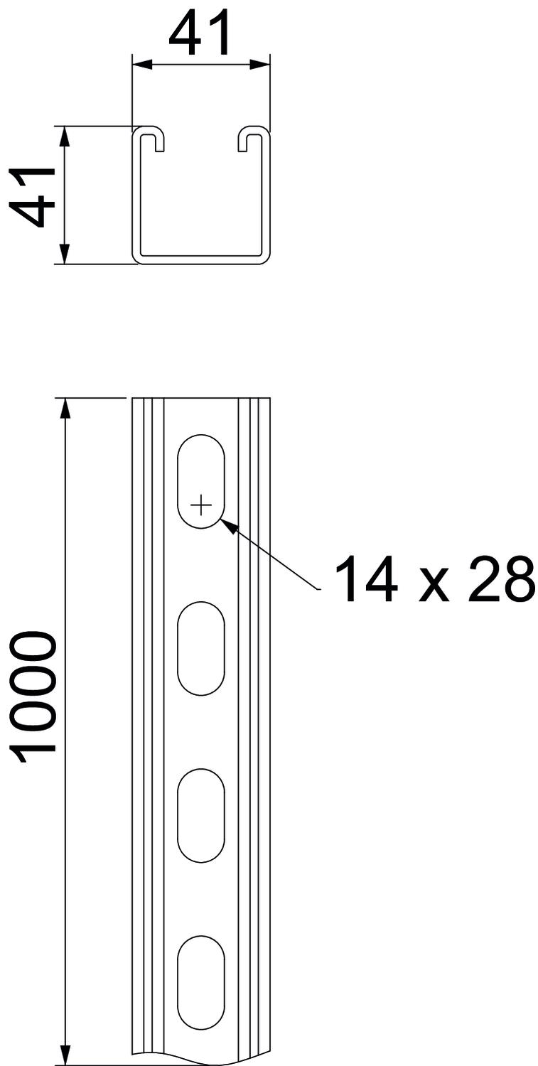 Product descriptionHeavy-duty unistrut with continuous perforation in base (hole size 14x28 mm), slot width 22 mm.