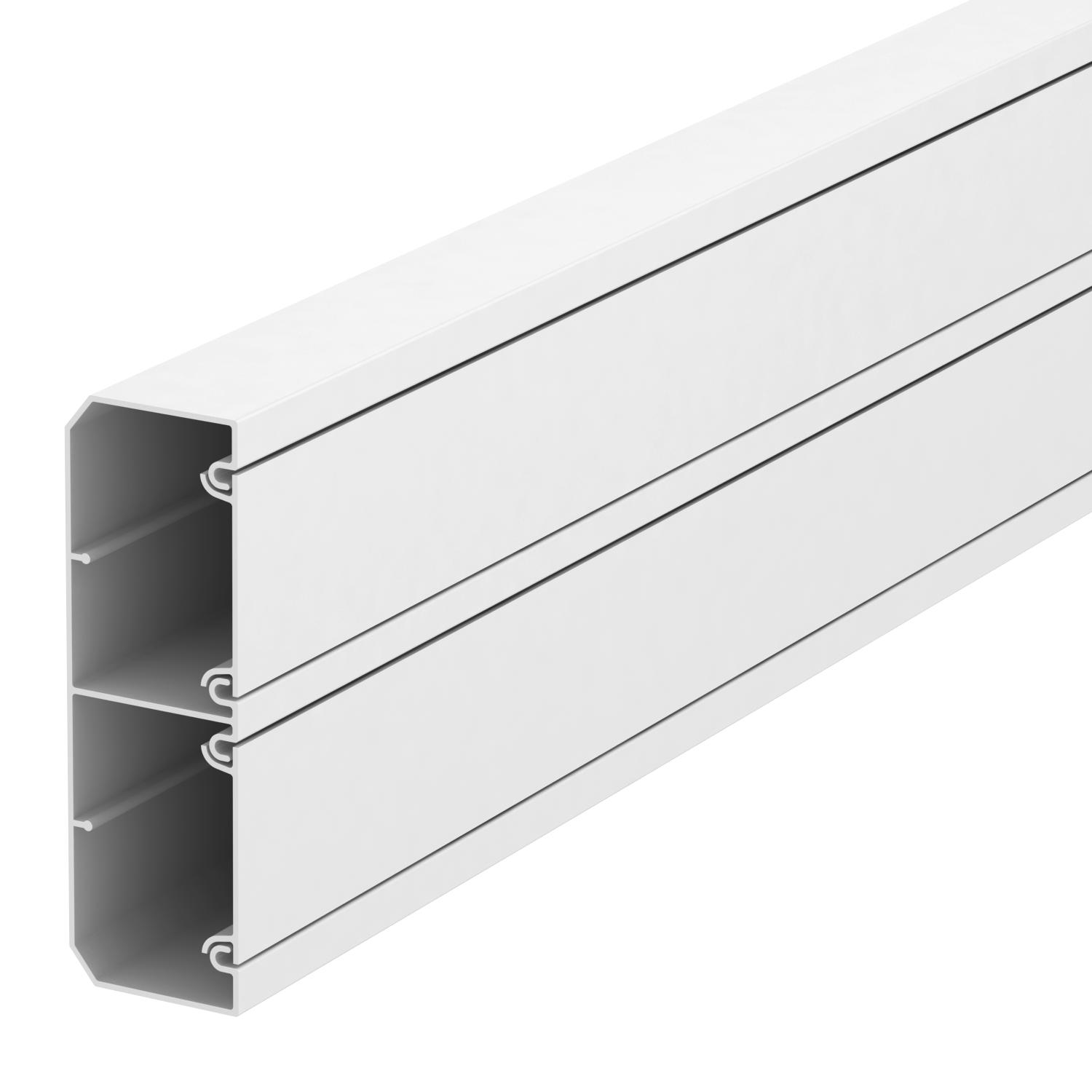 Product descriptionPVC device installation duct, 2-compartment, with covers to accept switching and plug-in devices.