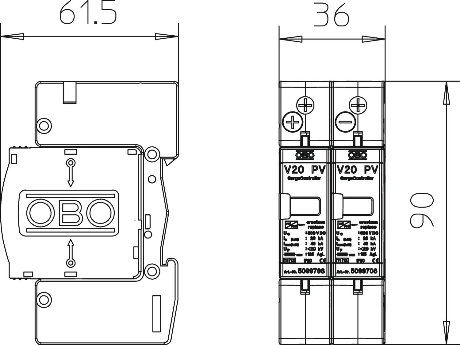 Product descriptionV20 surge arrester, Type 2, for earthed photovoltaic systems