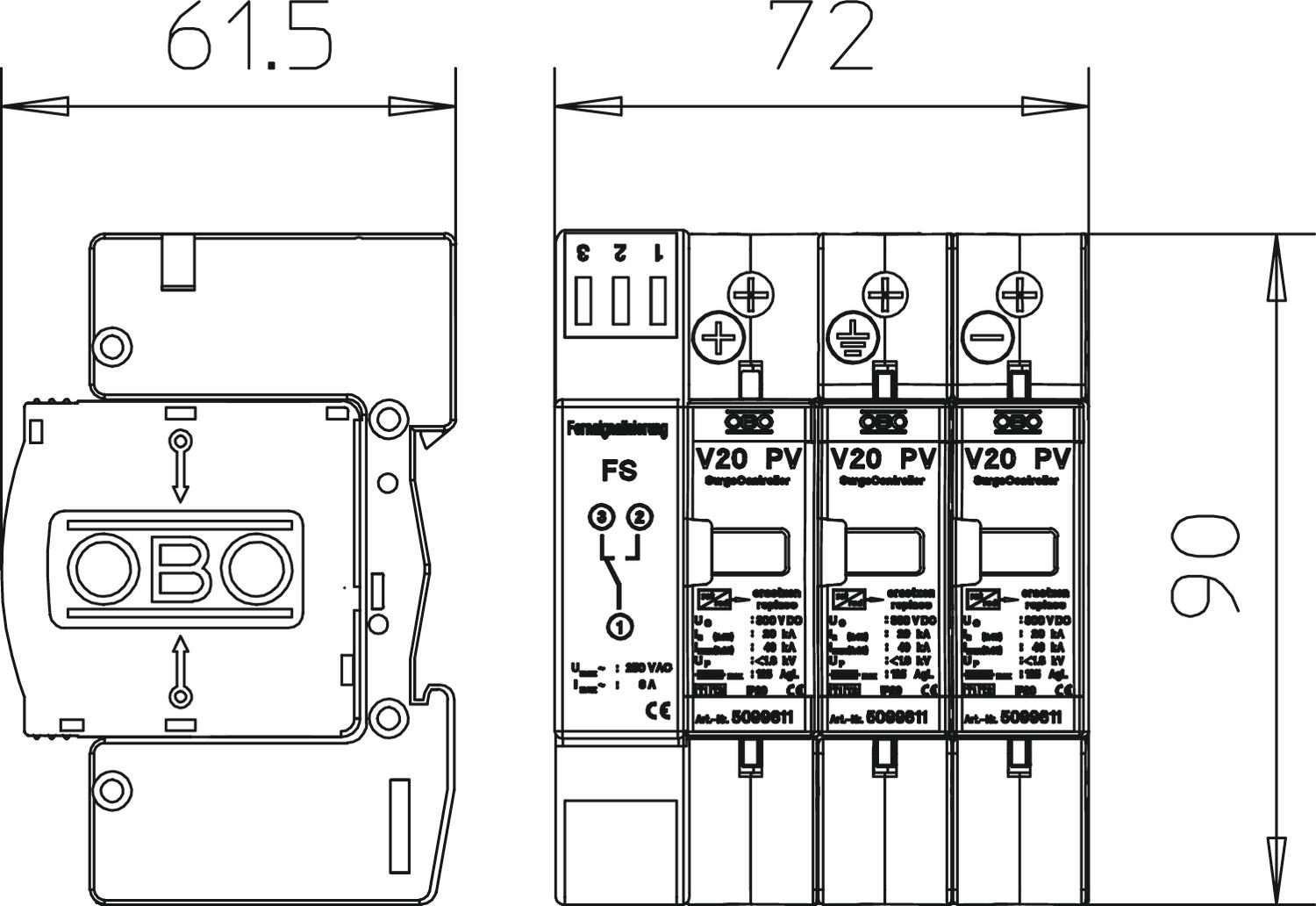 Product descriptionV20 surge arrester, type 2, for PV systems with FS contact as potential-free changeover