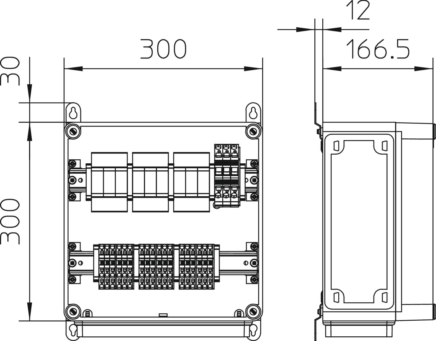 • Per protection device, there are 6 terminals up to 6 mm² pre-mounted in the housing, up to 30 A DC per terminal