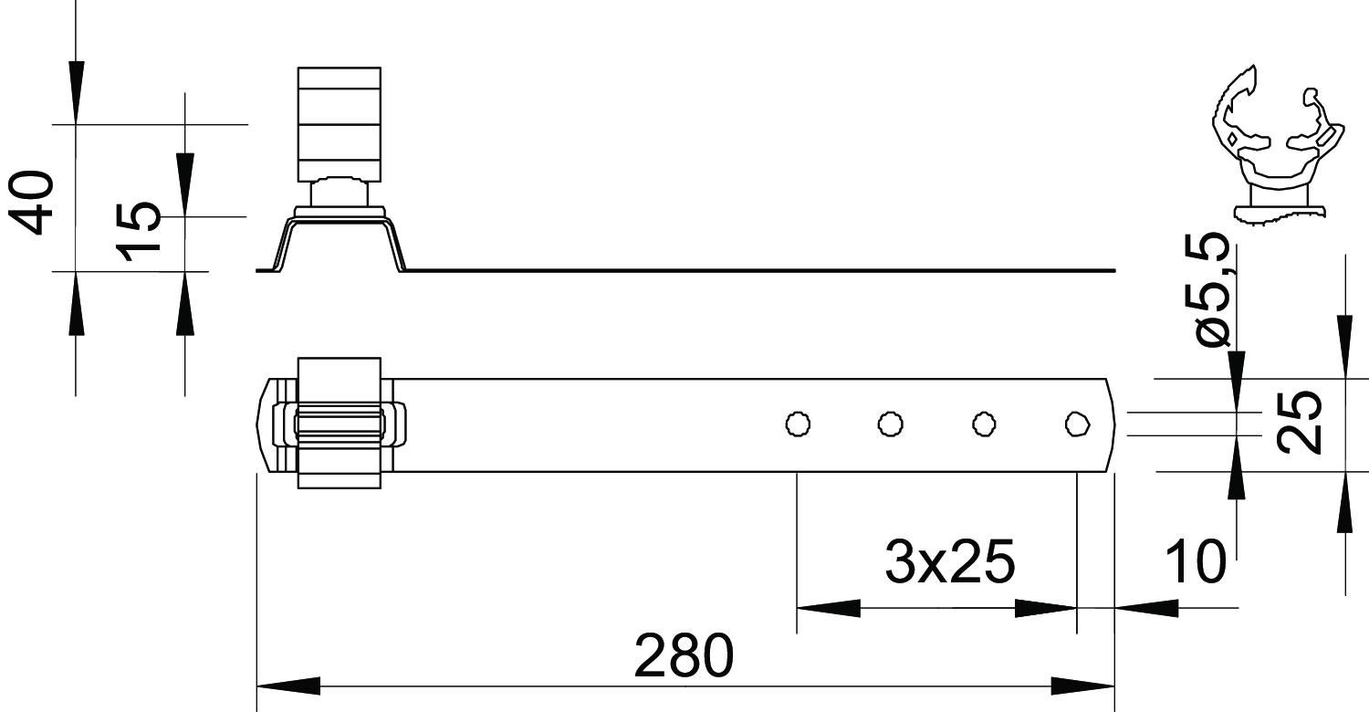 Application Roof surface CO2 Footprint (GWP) Cradle-to-Gate 0,3635 kg CO2e / 1 Piece Conductor diameter, max. 10 Conductor diameter, min. 8 Conductor fastening type With clamp clip Dimension 8mm Dimension L 280 mm Fit Rd 8-10 mm Length 280 mm Material Stainless steel 1.4301 Mounting height 40 mm Mounting type Screw-on - All types