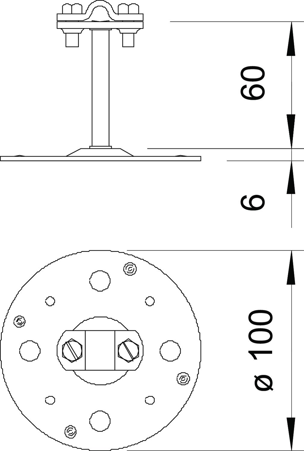 Application Flat roof CO2 Footprint (GWP) Cradle-to-Gate 0,5383 kg CO2e / 1 Piece Conductor diameter, max. 10 Conductor diameter, min. 8 Conductor fastening type With screw clip Dimension 60mm Dimension H 60 mm Fit Rd 8-10 mm Length 100 mm Material Steel Mounting height 60 mm Mounting type Adhesive Surface Hot-dip galvanised - All types