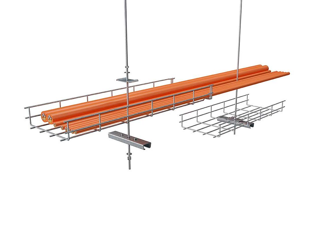 Routing system with centre suspension: The GRM 55 200 mesh cable tray