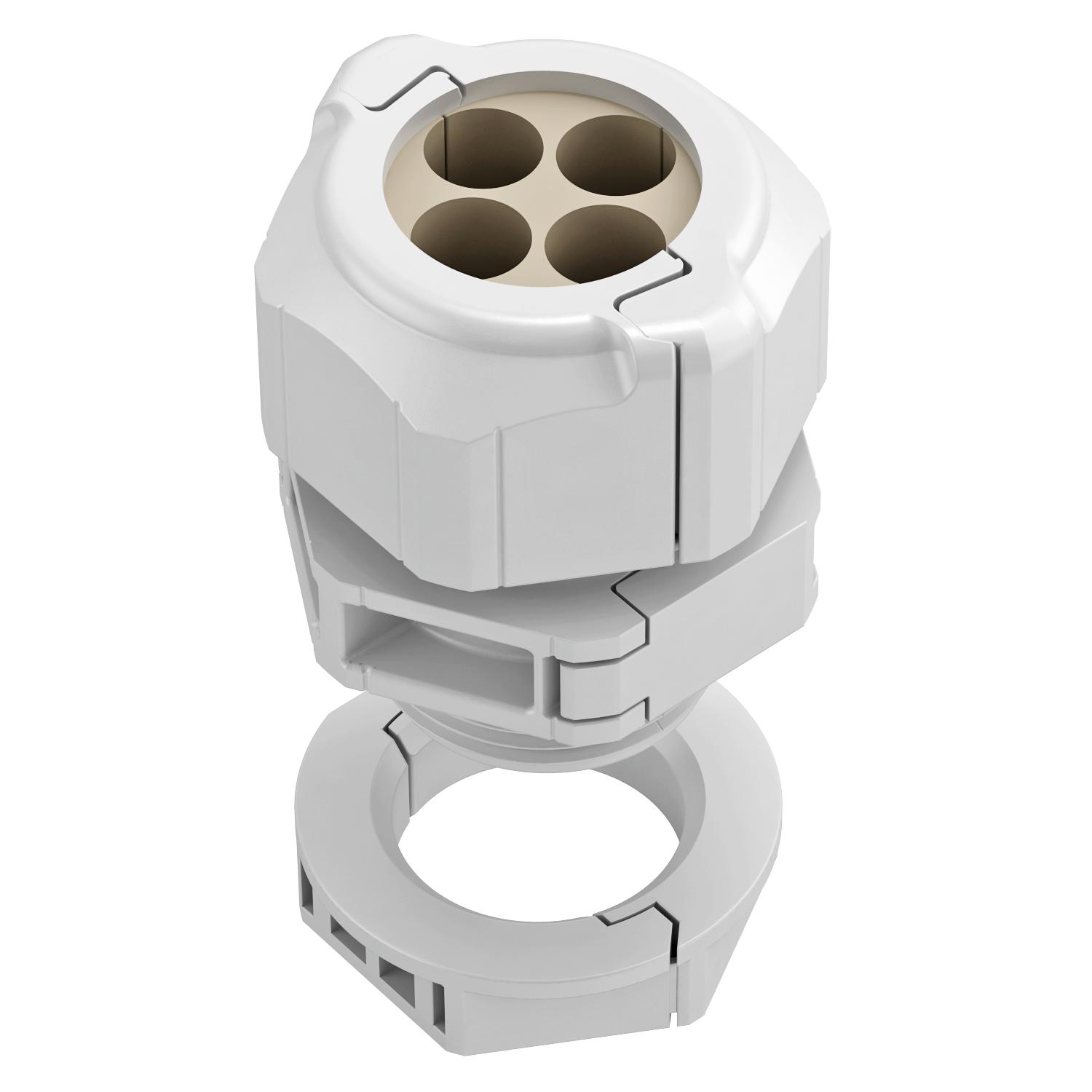 The sealing inserts are used to insert multiple cables through a gland. Depending on the application, the specified hole diameters are reduced by 1–2 mm when tightening the cable gland.