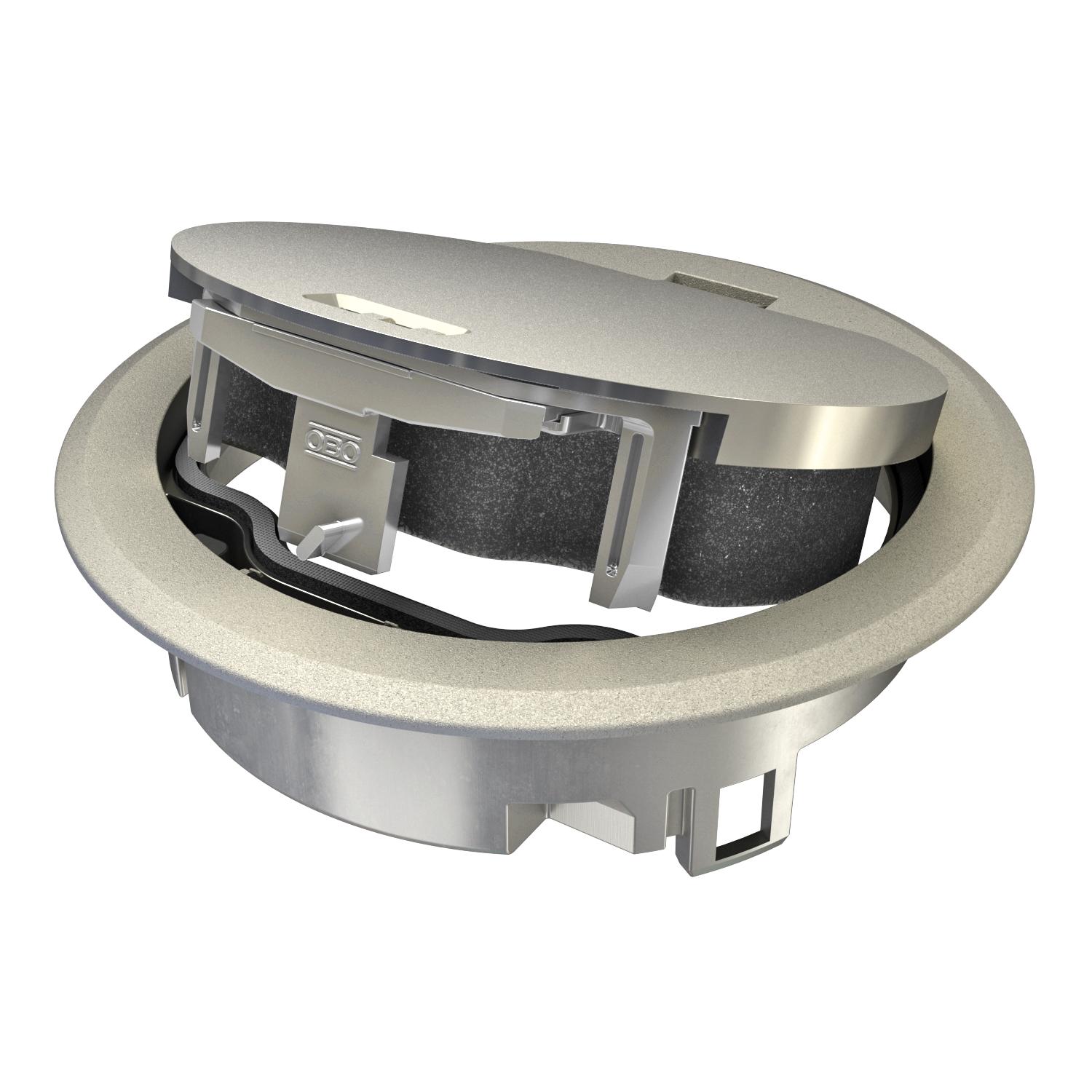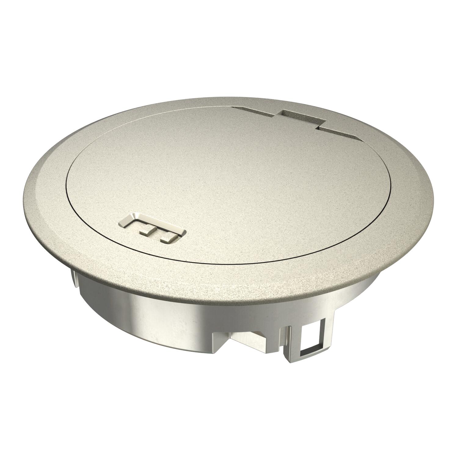 Product descriptionService outlet with hinged cover and locking slider for GES R2 floor socket for direct installation in the MT R2 installation socket.