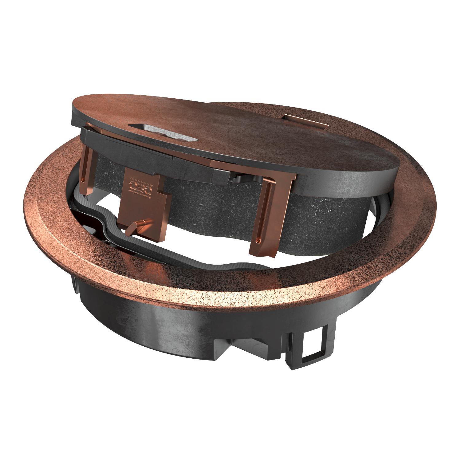Approvals VDE Cable outlet version Swivellable cord outlet CO2 Footprint (GWP) Cradle-to-Gate 0,5215 kg CO2e / 1 Piece External diameter 140 mm Floor care Wet Floor covering protection frame yes Installation depth 85 mm Material Die-cast zinc Opening mechanism Locking slider Protection rating (IP) when unused IP66 Protection rating (IP) when used IP20 Protection rating IK code IK10 Standard EN 50085-2-2 Suitable for cavity floor installation yes Suitable for raised floor installation yes Suitable for underfloor ducts no Suitable for wet care yes Surface Copper-plated Version for Round Vertical load, large area to 15,000 N Vertical load, small area to 3,000 N With floor covering recess no - All types