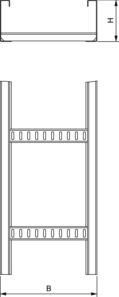 Dimension 6000x200x130 Dimension B 200 mm Height 130 mm Length 6000 mm Material Steel Rail thickness 1,6 mm Rung distance 300 mm Support spacing 3.0 m 2,2 kN/m Support spacing 6.0 m 0,5 kN/m Surface Hot-dip galvanised Width 200 mm - All types