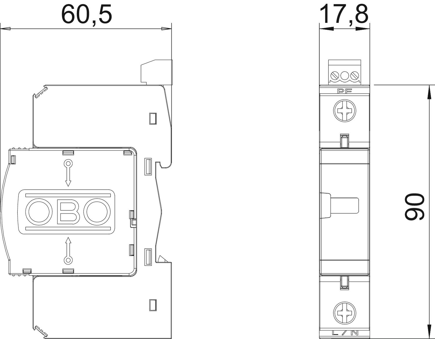 Arrester surge current (8/20 µs) [total] 20 kA Blow-out no CO2 Footprint (GWP) Cradle-to-Gate 0,4484 kg CO2e / 1 Piece Conductor cross-section, rigid (single-wire/multiwire), max. 35 mm² Conductor cross-section, rigid (single-wire/multiwire), min. 2,5 mm² Dimension 280V Installation type DIN rail 35 mm Integrated back-up fuse no Lightning protection zone LPZ 1→2 Max. mains-side overcurrent protection 125 Maximum back-up fuse 125 A Maximum continuous voltage AC 280 V Maximum discharge current (8/20 μs) 40 kA Network form TN Nominal discharge current (8/20 µs) 20 kA Nominal discharge current (8/20 µs) [L-N] 20 kA Nominal voltage AC (50/60 Hz) 230 V Operating temperature, max. 80 °C Operating temperature, min. -40 °C Permitted temperature range, max. 80 °C Permitted temperature range, min. -40 °C Pole version 1 Protection rating IP20 Remote signalling yes Response time <25 ns Signalling on device Visual SPD to EN 61643-11 Type 2 SPD to IEC 61643-1 Class II Test class, type 2 yes Version for 1-pole + FS - All types