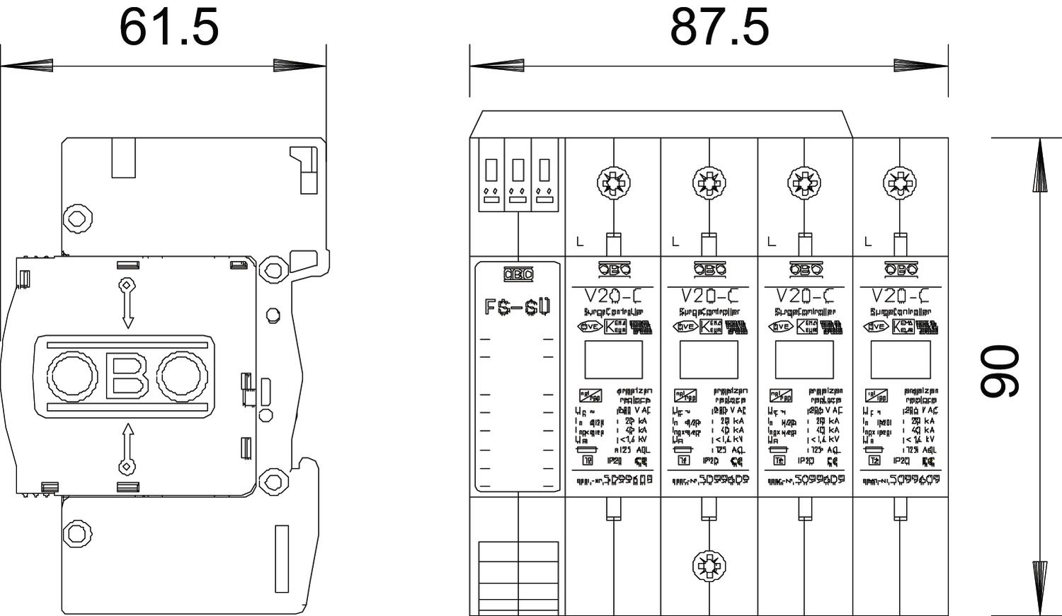 Product descriptionSurge arrester, type 2, ready for connection with remote signalling and voltage monitoring