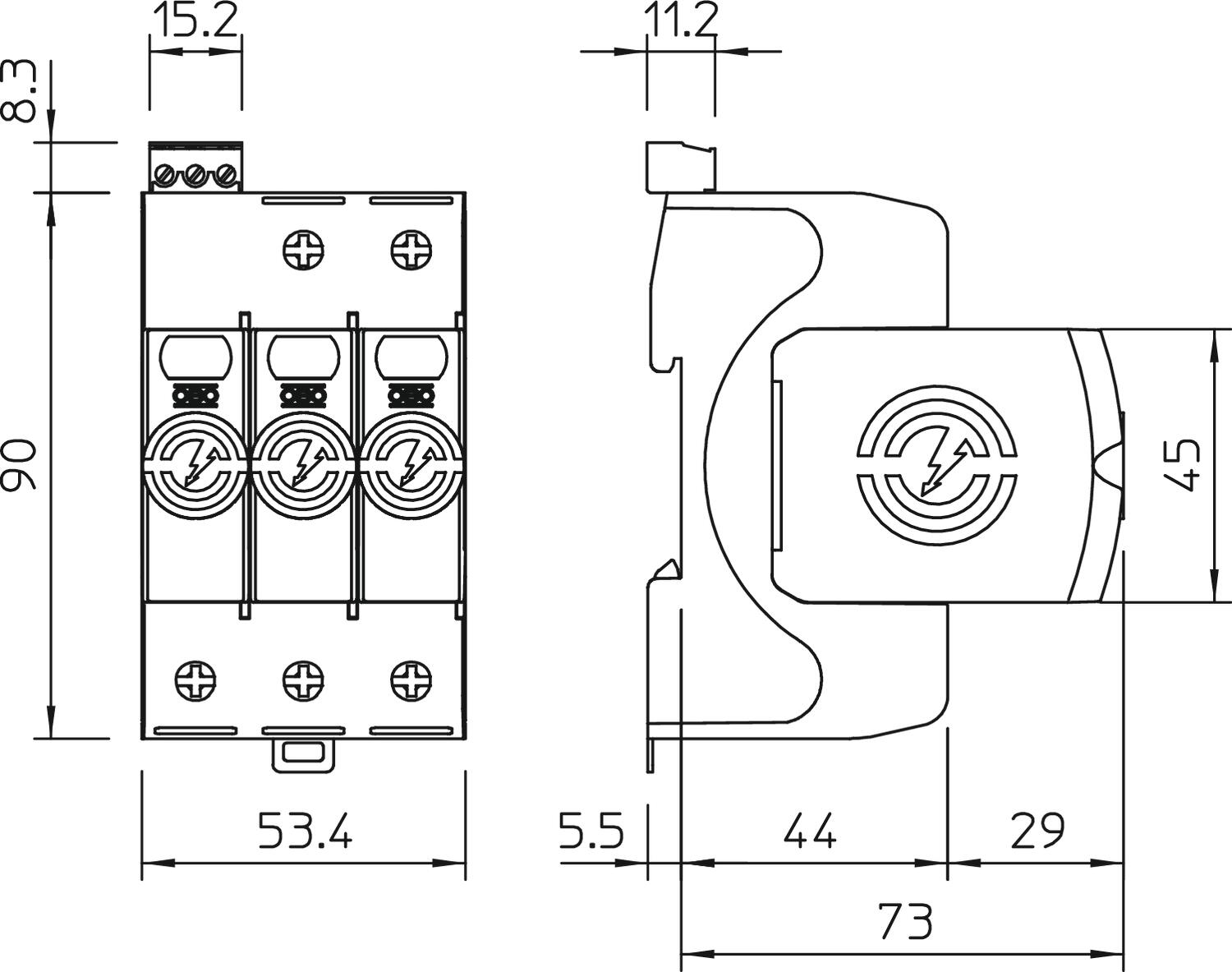 Approvals VDE, KEMA, UL, ÖVE Arrester surge current (8/20 µs) [total] 60 kA Blow-out no CO2 Footprint (GWP) Cradle-to-Gate 1,5611 kg CO2e / 1 Piece Combined voltage protection level [L-PE] 1,2 kV Conductor cross-section, flexible (fine-wire), max. 2 AWG Conductor cross-section, flexible (fine-wire), max. 35 mm² Conductor cross-section, flexible (fine-wire), min. 1,5 mm² Conductor cross-section, flexible (fine-wire), min. 16 AWG Conductor cross-section, rigid (single-wire/multiwire), max. 35 mm² Conductor cross-section, rigid (single-wire/multiwire), max. 2 AWG Conductor cross-section, rigid (single-wire/multiwire), min. 1,5 mm² Conductor cross-section, rigid (single-wire/multiwire), min. 16 AWG Connection cross-section, FM terminals, max. 16 AWG Connection cross-section, FM terminals, max. 1,5 mm² Connection cross-section, FM terminals, min. 0,5 mm² Connection cross-section, FM terminals, min. 21 AWG Dimension 150V FM contacts Changeover Follow current quenching capacity (eff) [N-PE] 0,1 kA Housing material surge protection components PA UL 94 V-0 Humidity, max. 95 % Humidity, min. 5 % Installation type DIN rail 35 mm Integrated back-up fuse no Max. mains-side overcurrent protection 160 A gL/gG Maximum back-up fuse 160 A Maximum continuous voltage (L-N) 150 V Maximum continuous voltage (N-PE) 255 V Maximum continuous voltage AC 150 V Maximum discharge current (8/20 μs) 40 kA Maximum discharge current (8/20 μs) [L-N] 40 kA Maximum discharge current (8/20 μs) [N-PE] 60 kA Minimum distance 1,5 mm Network form Other Nominal discharge current (8/20 µs) 20 kA Nominal discharge current (8/20 µs) [L-N] 20 kA Nominal discharge current (8/20 µs) [N-PE] 40 kA Nominal voltage AC (50/60 Hz) 120 V Operating temperature, max. 80 °C Operating temperature, min. -40 °C Permitted temperature range, max. 80 °C Permitted temperature range, min. -40 °C Pole number 3 Pole version 2+N/PE Protection level [L-N] ≤0,8 Protection rating IP20 Remote signalling yes Residual voltage [L-N] @ 1 kA 0,5 kV Residual voltage [L-N] @ 5 kA 0,6 kV Response time <25 ns Short-circuit resistance for max. mains-side overcurrent protection 50 kA eff Short-circuit resistant yes Signalling on device Visual SPD to EN 61643-11 Type 2 SPD to IEC 61643-1 Class II SPD to UL 1449 Type 4 Switching power AC 230 V; 0,5 A Switching power DC 230 V; 0,1 A / 75 V; 0,5 A Test class, type 2 yes TN network form yes TN-C-S network form yes TN-S network form yes Torque 4 Nm TOV voltage [L-N] ‒ fail safe mode ‒ 120 min. 230 V TOV voltage [L-N] ‒ withstand mode ‒ 5 s 175 V TOV voltage [N-PE] ‒ withstand mode ‒ 200 ms 1200 V TT network form yes - All types