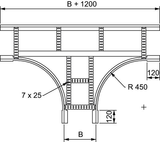 Product descriptionT-branch piece for all PS75 cable ladder types of 75 mm side height.