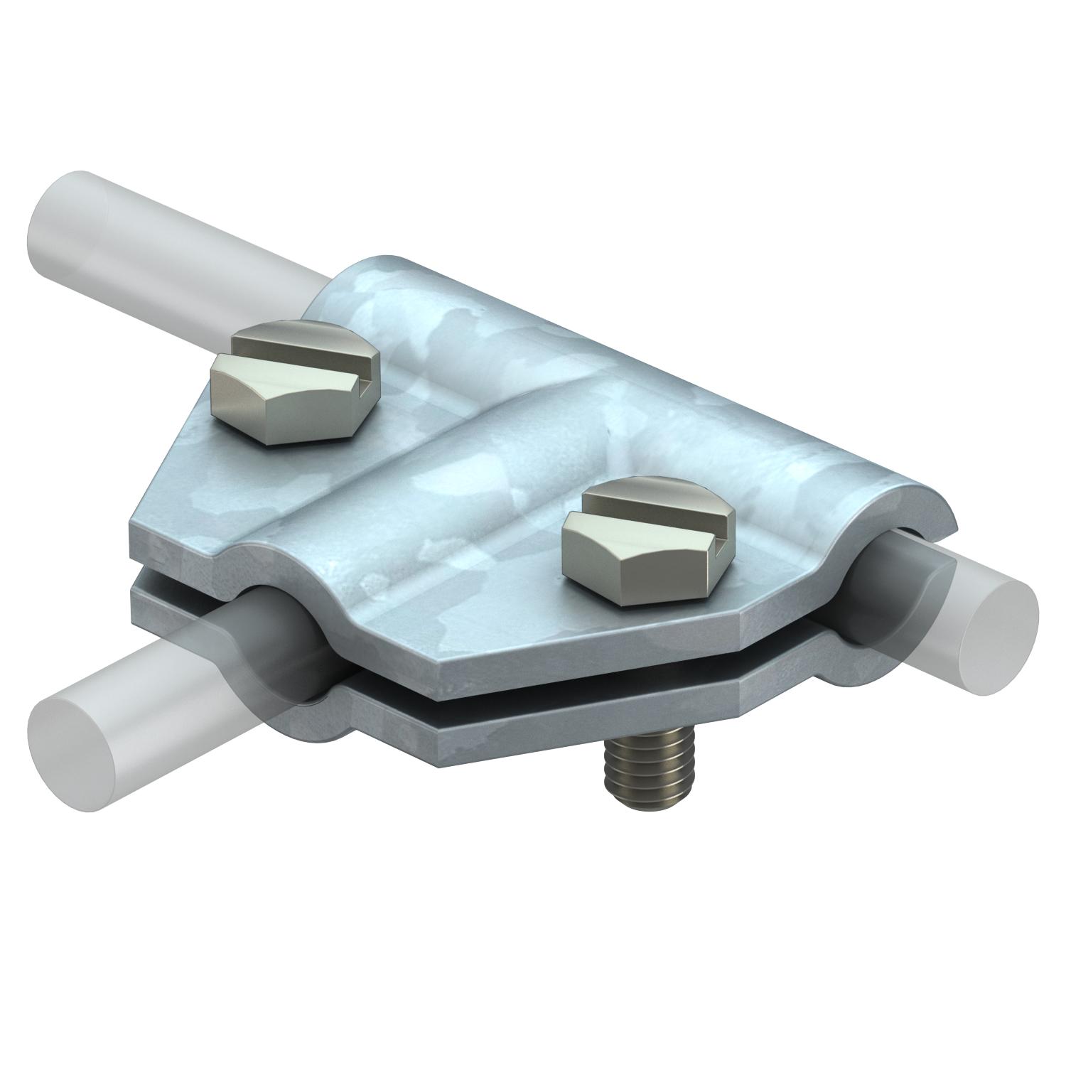 CO2 Footprint (GWP) Cradle-to-Gate 0,2506 kg CO2e / 1 Piece Dimension 8-10mm Fit Rd 8-10 mm Intermediate plate no Lightning current carrying capacity N/50 kA Material Steel Suitable for connection Round conductor Rd 8–10 / Rd 8–10 Surface Hot-dip galvanised Type of connector T connector Type of fastening screw Hexagonal bolt - All types