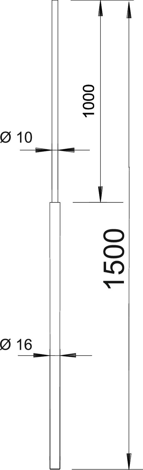 • Last metre is tapered from Ø 16 mm to Ø 10 mm, material: AlMgSi