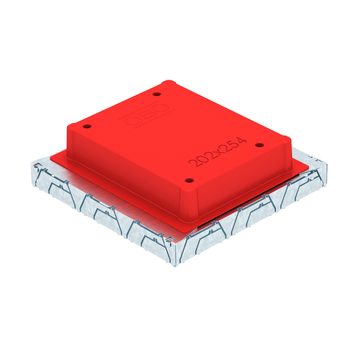 Product descriptionUnderfloor outlet box with fixed, unchangeable 202 x 254 mm installation opening for an installation unit of nominal size 6. The mounting opening is created using the screed protection cover contained in the scope of supply. The underfloor box possesses installation openings for three single-compartment PVC ducts of nominal size 60 x 25 and 90 x 35 on all four sides. The box is principally suited for use in floor structures in cement screed with a structure height of up to 90 mm.