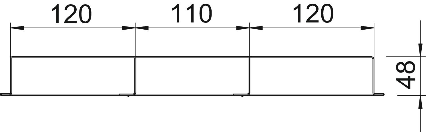 Application area Screed-covered CO2 Footprint (GWP) Cradle-to-Gate 14,2461 kg CO₂e / 1 Meter Cross-section, draw a 5428 mm² Cross-section, draw b 5014 mm² Decouplable no Dimension 2000x350x48 Dimension a 120 mm Dimension b 110 mm Dimension h 48 mm Duct height, min. 48 mm Floor plate yes Height 48 mm Length 2000 mm Material Steel Number of compartments 3 St. Number of fixed partitions 2 Removable cover no Surface Strip galvanized Usable cross-section 15870 mm² Width 350 mm - All types