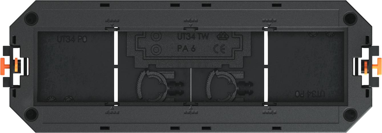Universal support with two strain reliefs, partition and UT 4 P4 cover plate for installation of 4 Modul 45 devices in OKB IT device supports.